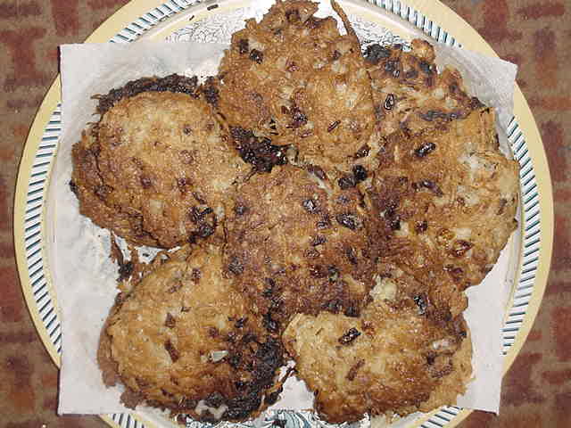 Serve immediately after frying. They can be eaten plain or with sour cream or applesauce. You can freeze them after frying. Later, they can be reheated in the oven at 275° for 20-30 minutes.