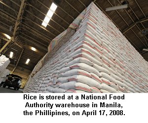 An anonymous high-tech professional writing on an investment Web site, Seeking Alpha, said he recently bought 10 50-pound bags of rice at Costco. “I am concerned that when the news of rice shortage spreads, there will be panic buying and the shelves will be empty in no time. I do not intend to cause a panic, and I am not speculating on rice to make profit. I am just hoarding some for my own consumption,” he wrote.