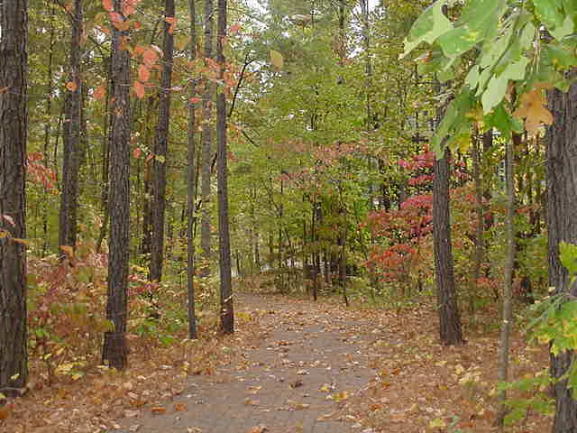 I have been taking some colorful autumn pictures in Alabama. In many places in the northern USA, most or all of the foliage has changed color. But here, many trees are still partly green and partly red, orange, or yellow, since they are in the process of changing. The colors in some places are like walking through a bowl of Fruit Loops.