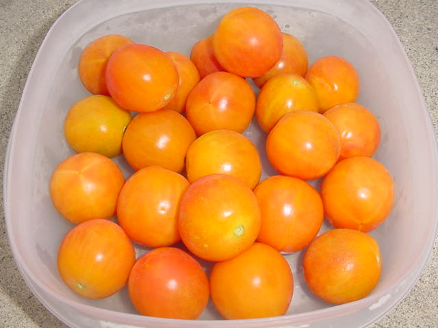 A friend has some nice tomato plants. Whenever I’m there, I pick the bite-sized spheres right off the plants and eat them like candy. Today, I have eaten at least 20 of them; I’ve lost count. That included some on my salad tonight.