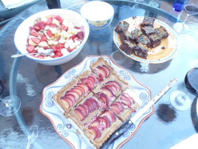 My friend that I’m visiting in No. CA had a Labor Day weekend barbecue today and invited several friends. Ahi tuna and tarragon chicken breasts were cooked on the barbecue. All of the food was outstanding, including my Ghirardelli double chocolate brownies with chocolate frosting. Yeah, I love chocolate.
