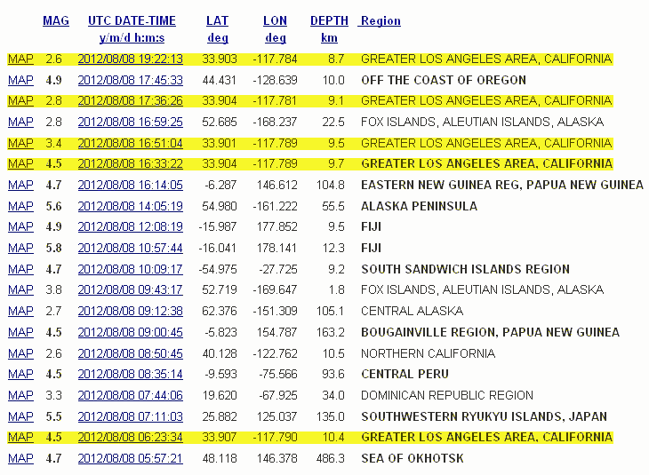 In other news, according to the USGS, there were a few small to moderate earthquakes in the Los Angeles area from late last night through today. They all were in Orange County, specifically Yorba Linda, which is a few miles from where I attended school at the Southern California College of Optometry.