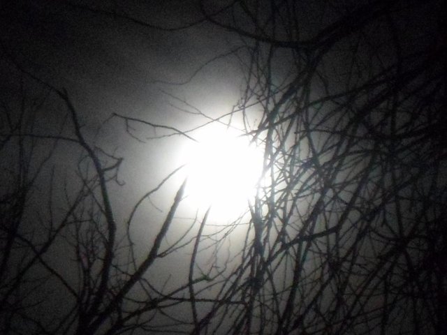 I took a few moon shots very early this morning through various tree branches. The moon wasn’t very distinct because it was somewhat overcast, but it sure was big and bright.