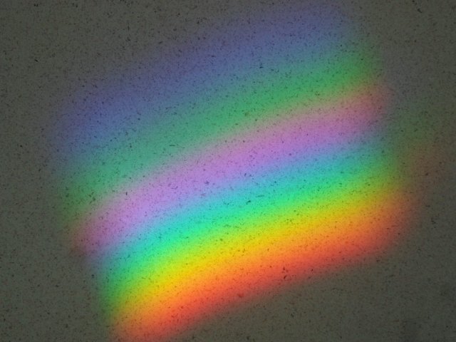 I was in a public building today and kept seeing rainbows on the walls in one area. I snapped a few shots but, initially, could not figure out how they were being formed. Then I looked up at some big windows and saw five elongated prisms...pretty cool idea.