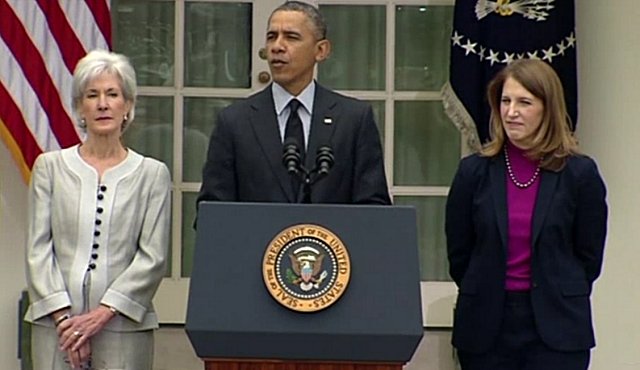 "Yes, we lost the first quarter of open enrollment period with the problems with HealthCare.gov — and they were problems," Mr. Obama conceded. "But under Kathleen's leadership, her team at H.H.S. turned the corner, got it fixed, got the job done, and the final score speaks for itself: There are 7.5 million people across the country that have the security of health insurance, most of them for the very first time."