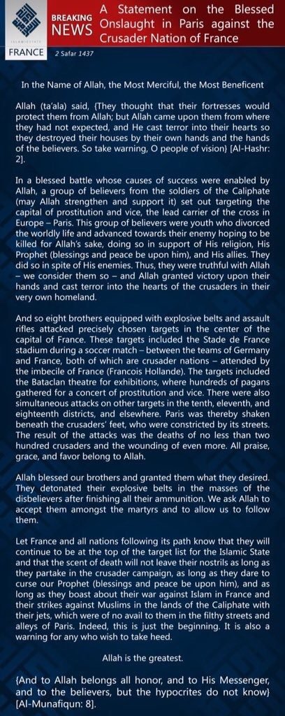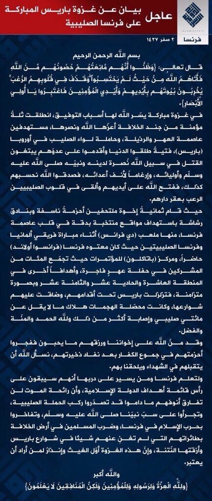 ISIS Statement in Arabic