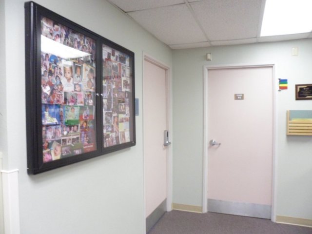 The reception room is where my patients checked in and waited, although it now is part of the pediatrics department. The place has been remodeled, and the long hallway did not used to be there. In the last photo, the door on the right opened into my room, where I examined thousands of people’s eyes during the time I worked there.