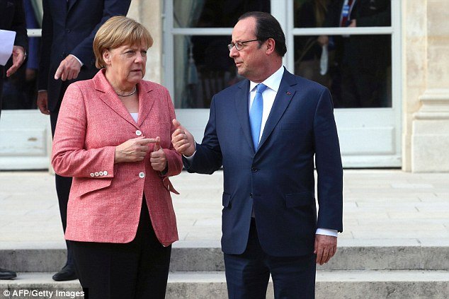 ![]() German Chancellor Angela Merkel (pictured left) and French President Francois Hollande (right) are travelling to the tiny Italian island of Ventotene today to discuss Europe's future. |