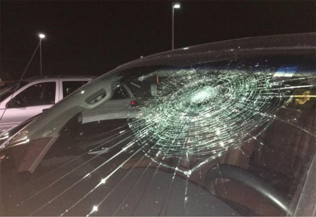 The picture of Thomas' car quickly went viral on Monday after the team's broadcaster, Sam Levitt, tweeted a picture of the shattered windshield.