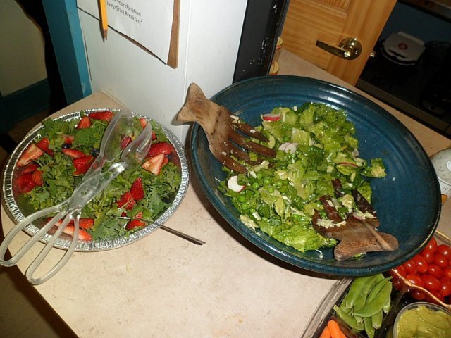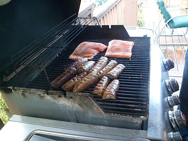 He already had prepared some salmon and eggplant, topped with very tasty spices, to place on the grill out on the deck. However, we had to put the grilling on hold until the rain had stopped.