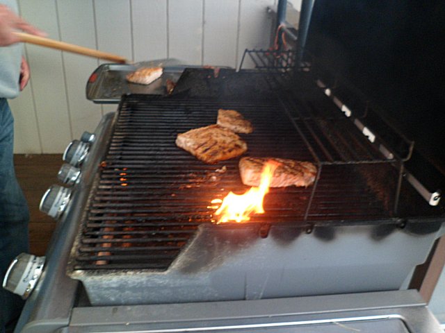 The first sign that this had happened was seeing a hummingbird coming to eat at the feeder. Then it took maybe another half hour for him to heat up the grill and cook the food.