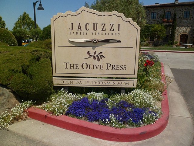 Next, we went up the road to Jacuzzi Winery and Olive Press. The wine tasting room was full of people, which was fine because I’d had enough wine. Instead, we tasted numerous olive oils, which I liked very much. Yummy.