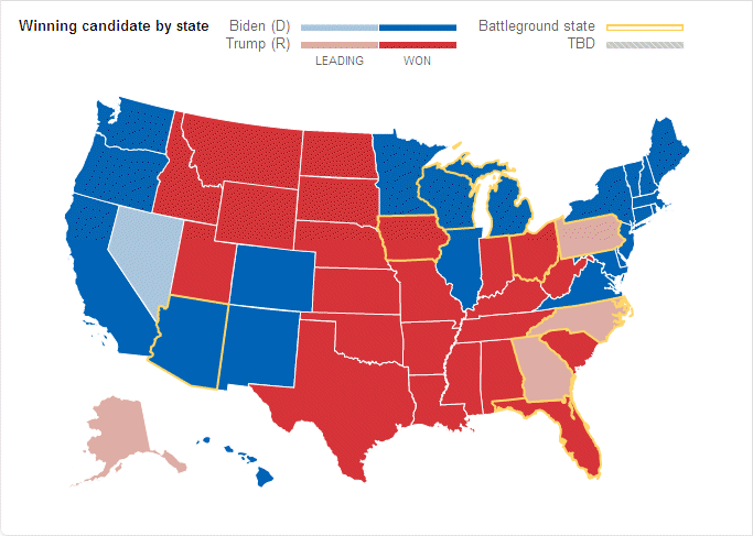 It has been exactly 5 weeks since the U.S. Presidential Election between Donald Trump and Joe Biden on Nov. 3. Not all states have officially confirmed either one to be the winner. There continue to be several investigations into election irregularities and possible fraud. However, if nothing is legally overturned, the election map most likely will remain as it is: