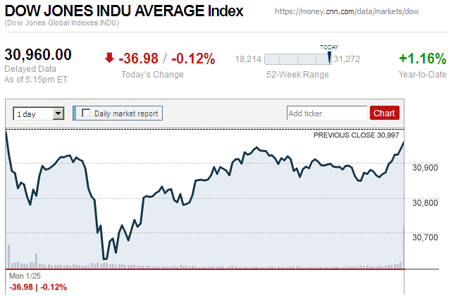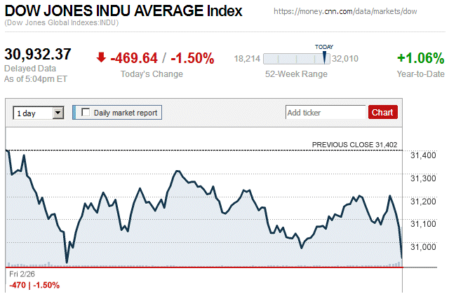 There were significant losses in major stock market indices today. It is the first time that the Dow has closed below 30,000 since Dec. 14, 2020. Today’s big changes seem to be related to the recent supercharged investing in GameStop.