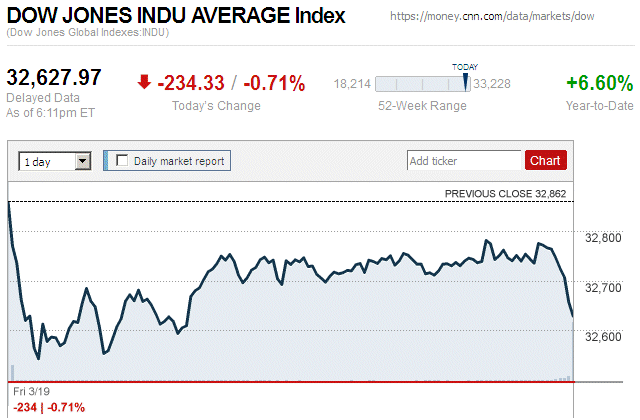 There was a widespread and substantial plunge in major stock indices today. The Dow Jones Industrial Average (DJIA) was down 2.05% to 30,303.17, while the Standard & Poor’s 500 stock index was down 2.57% to 3,750.77. The NASDAQ Composite index was down 2.61% to 13,270.60. ![]() |