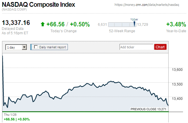 Like the last two days, major stock indices were mixed today. The Dow was down. The S&P 500 and NASDAQ were up and set new highs. ![]() |