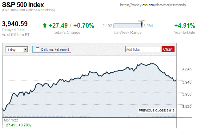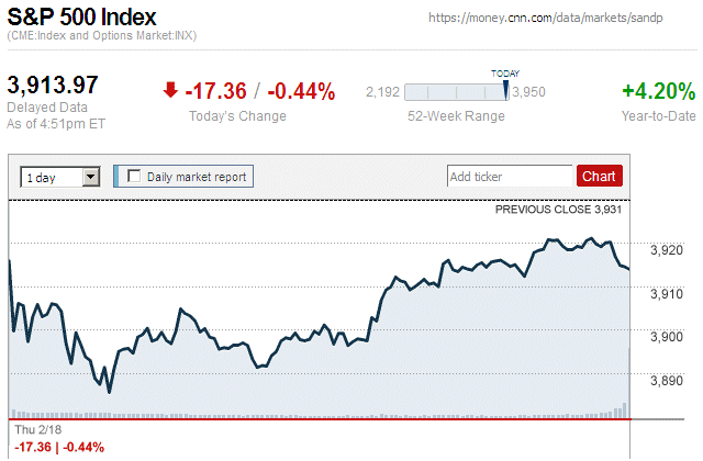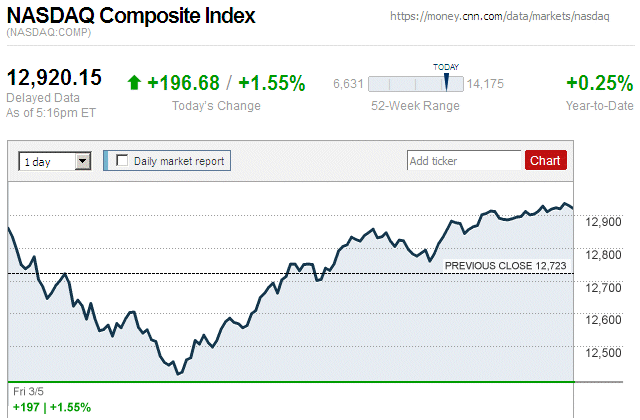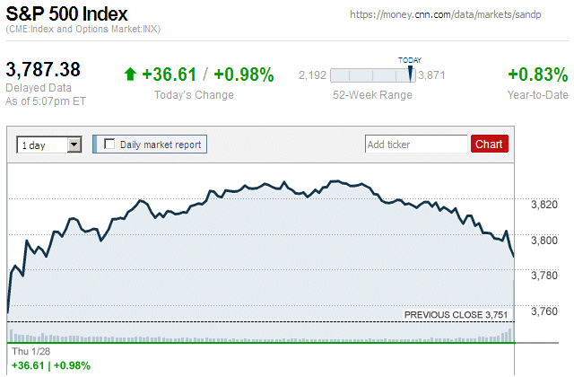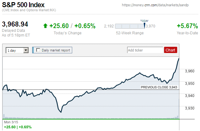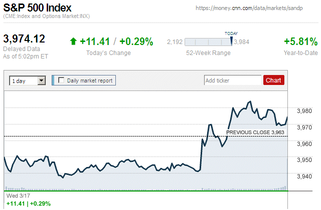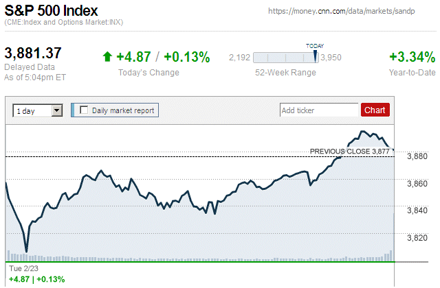 The trading week ended today with some large and significant increases in major stock indices. This included a big upward spike at the end of the day. ![]() |