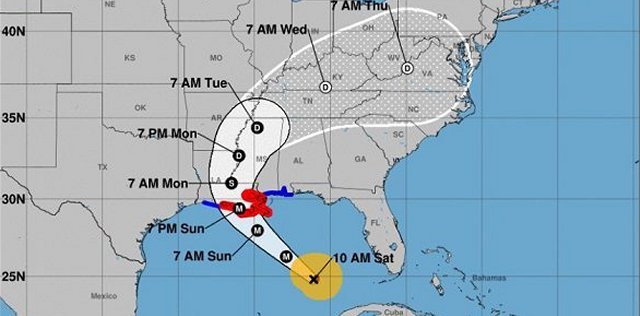 There are expected to be storm surges, heavy rain, strong winds and tornadoes in parts of Florida. It may become a Category 1 hurricane at some point. A hurricane watch is in effect for Egmont Key to the Steinhatchee River, Florida.