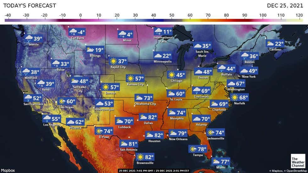 There were record-breaking temperatures for Christmas day in parts of the southeastern U.S. today. Temperatures in many places were 10° to 20° above normal for December 25.
