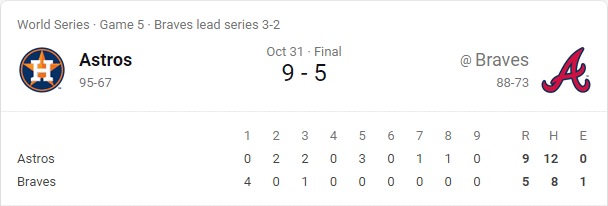 The two teams in the 2021 World Series will be the Atlanta Braves and the Houston Astros. The first game will be played tonight in Houston at Minute Maid Park. It is scheduled to begin at 8:09 p.m. EDT.
