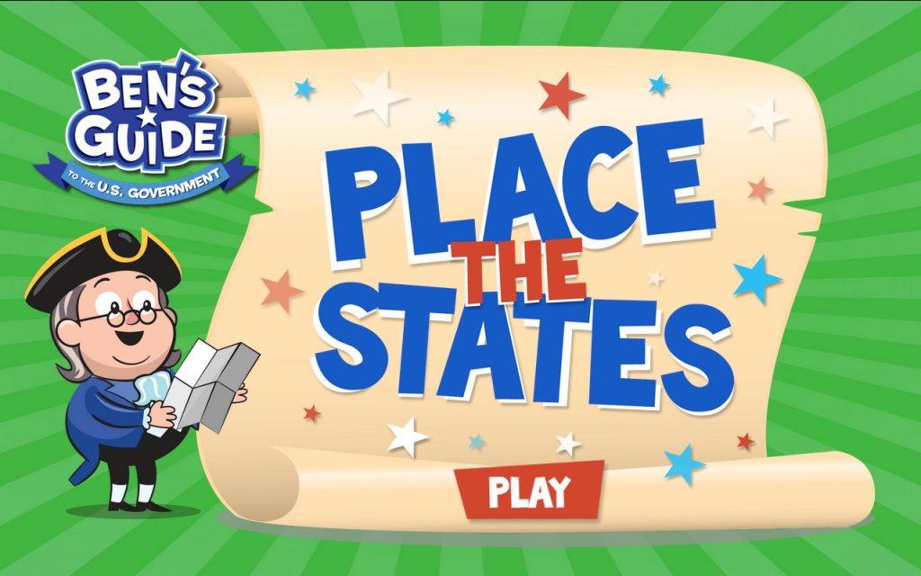 In the Games section of Ben’s Guide, I clicked on Place the States. It didn’t take me long to drag all of the states to their proper places, and I remembered all of their capital cities. I think that all Americans, age 9 and older, should be able to do that.