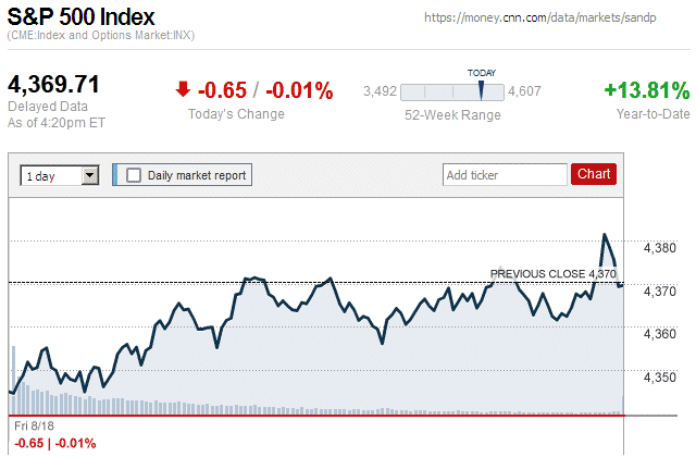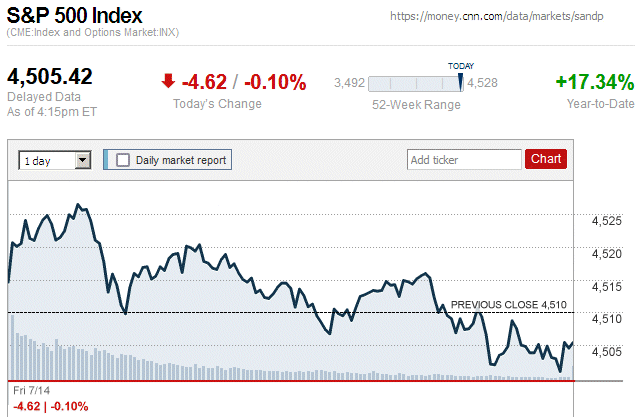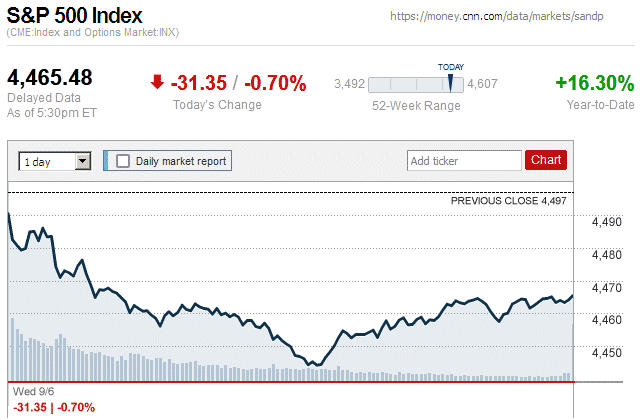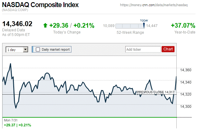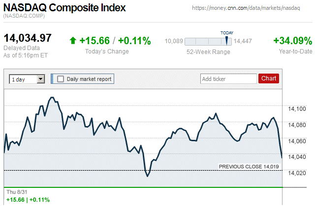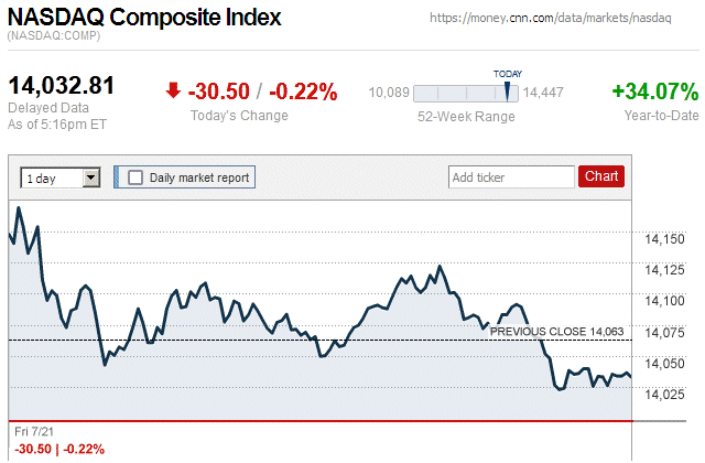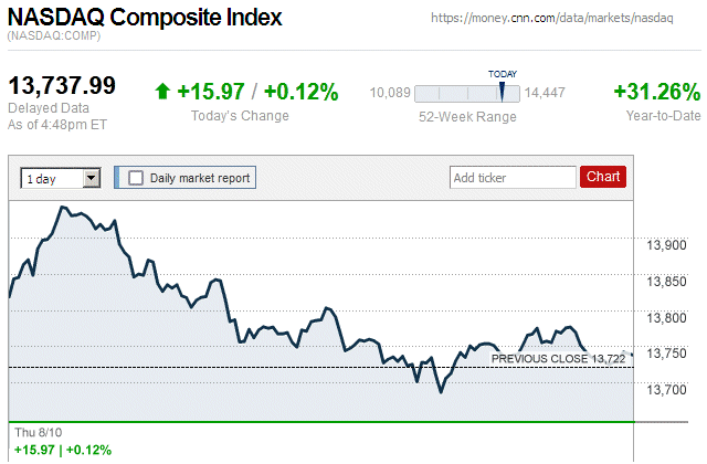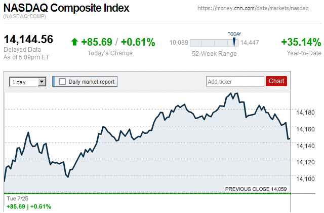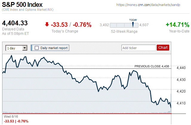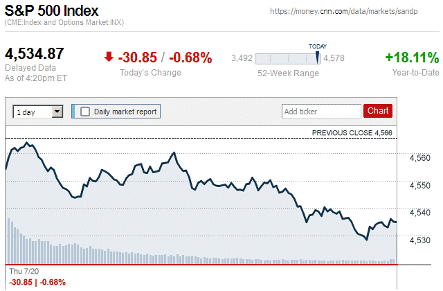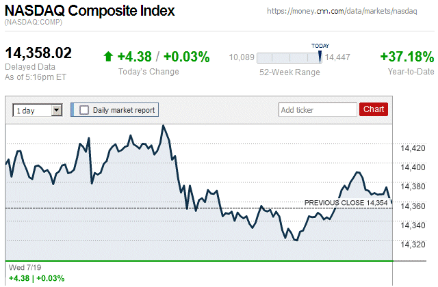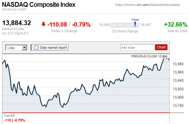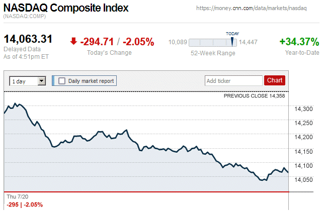 Although major stock indices spent most of the trading day in positive territory, later they sharply declined and closed the day with small to large losses. Also, this is the first trading day since July 7 (almost 3 weeks ago) that there were widespread declines in major stock indices. ![]() |