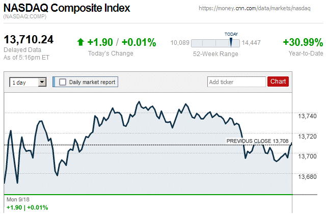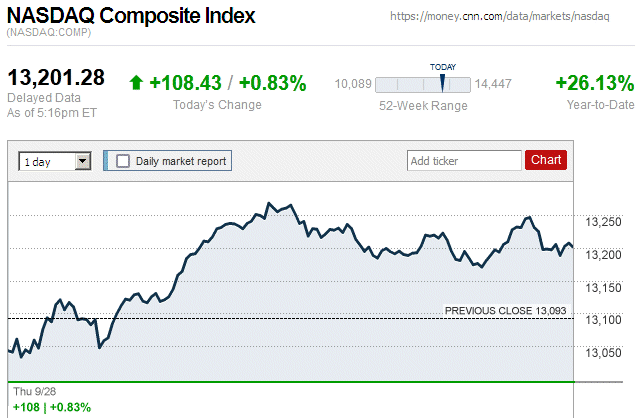 There were variable movements of major stock indices throughout the trading day, and they closed with tiny to small mixed amounts. Also, this is the thirteenth consecutive trading day that the Dow has closed in positive territory. It is the Dow’s longest winning streak since 1987. ![]() |