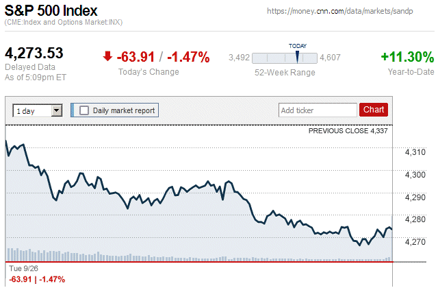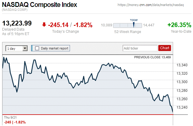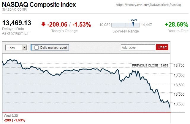 After a big market rally yesterday, there was a notable market plunge today with major stock indices closing with moderate to large losses. Also, they were in negative territory for the entire trading day. ![]() |