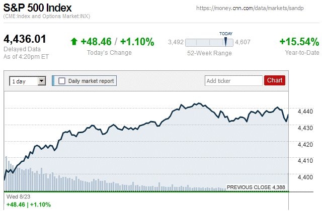 For the first time in over a week, there was a notable market rally with major stock indices closing with moderate to large gains. Also, they were in positive territory for the entire trading day. ![]() |