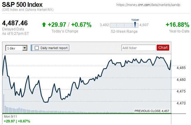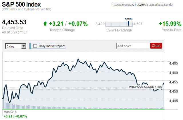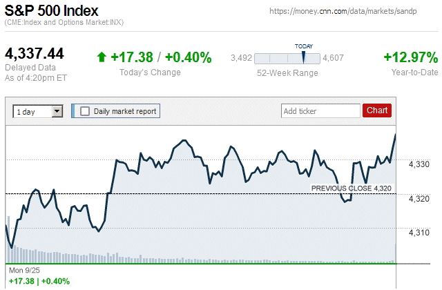 On the first trading day of the new week, there was a small rally with major stock indices closing the day with small to moderate gains. Also, they were in positive territory for the entire trading day. ![]() |