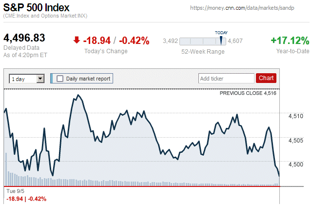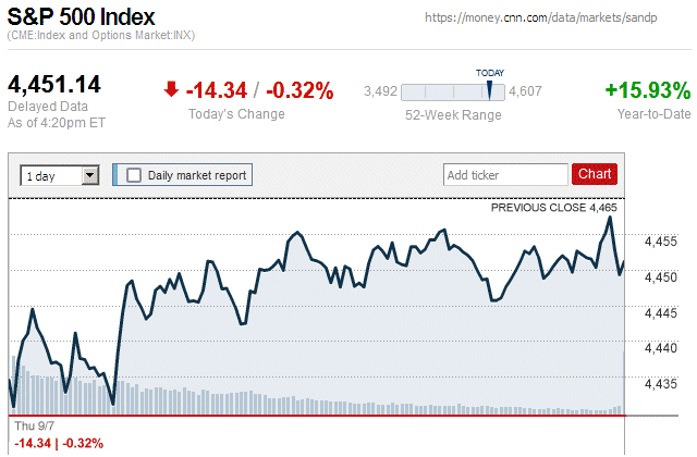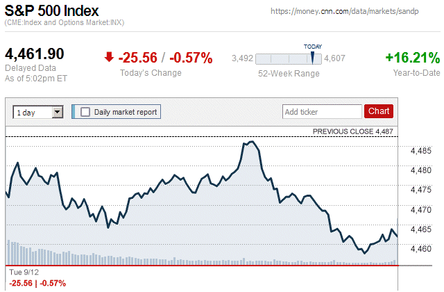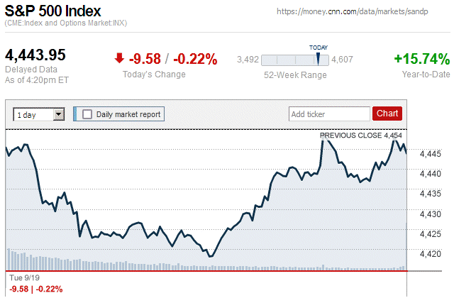 By the end of a down trading day, major stock indices closed with small to moderate losses. Also, they were in negative territory for the entire trading day. ![]() |