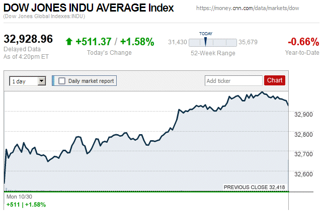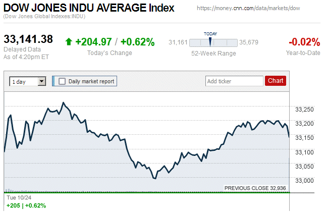 After yesterday’s losses, major stock indices had a reversal today and closed with very small to small gains. The Dow Jones Industrial Average (DJIA) was up 0.24% to 35,416.98, while the Standard & Poor’s 500 stock index was up 0.10% to 4,554.89. The NASDAQ Composite index was up 0.29% to 14,281.76. ![]() ![]() ![]() |
