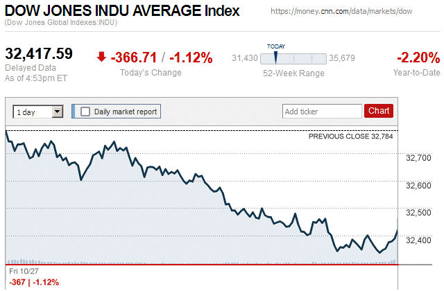 There were variable movements of major stock indices during the trading day, and they closed with small to large mixed amounts. The Dow Jones Industrial Average (DJIA) was down 1.12% to 32,417.59, while the Standard & Poor’s 500 stock index was down 0.48% to 4,117.37. The NASDAQ Composite index was up 0.38% to 12,643.01. ![]() ![]() ![]() |