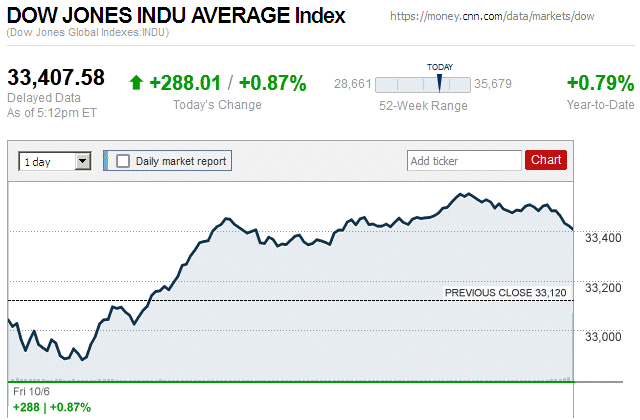 After beginning the trading day in negative territory, major stock indices gradually increased throughout the day and closed with small to moderate gains. The Dow Jones Industrial Average (DJIA) was up 0.59% to 33,604.65, while the Standard & Poor’s 500 stock index was up 0.63% to 4,335.66. The NASDAQ Composite index was up 0.39% to 13,484.24. ![]() ![]() ![]() |