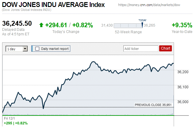 After a trading day with considerably variable movements, major stock indices closed with small to very large mixed amounts. The Dow Jones Industrial Average (DJIA) was up 1.47% to 35,950.89, while the Standard & Poor’s 500 stock index was up 0.38% to 4,567.80. The NASDAQ Composite index was down 0.23% to 14,226.22. ![]() ![]() ![]() |