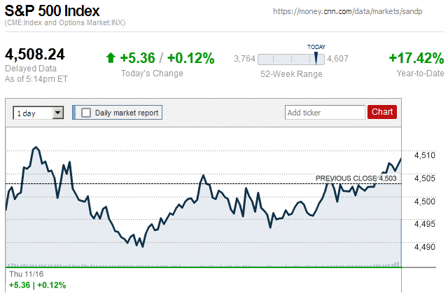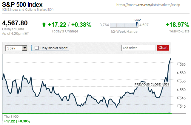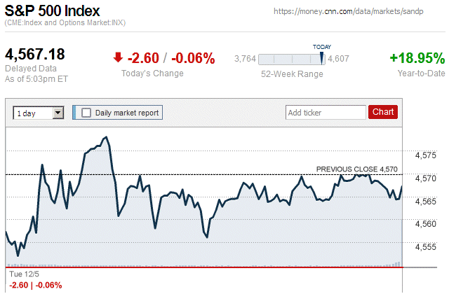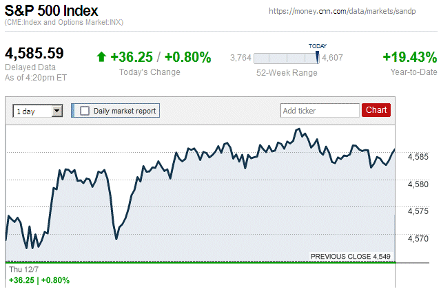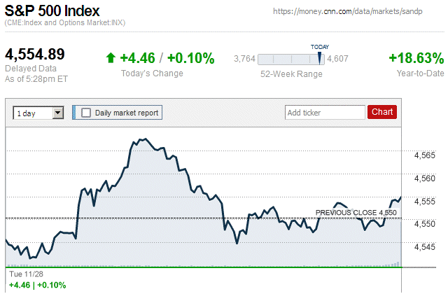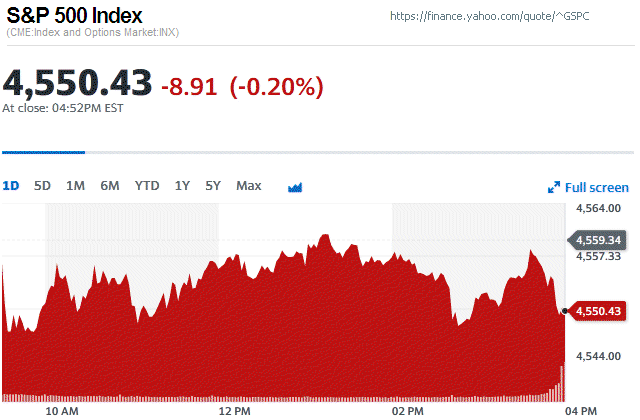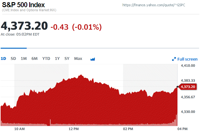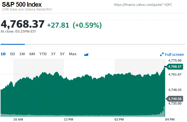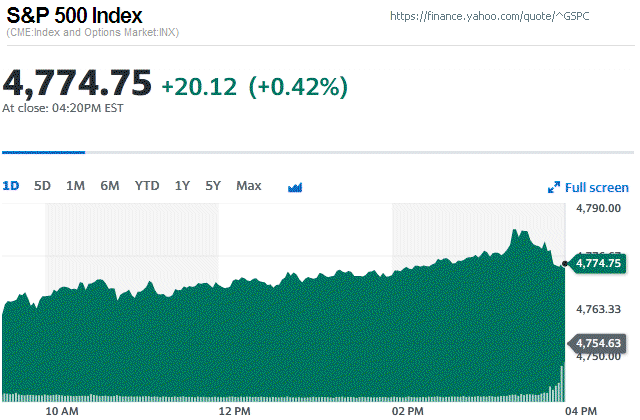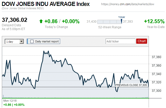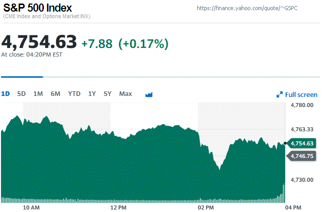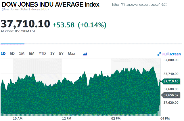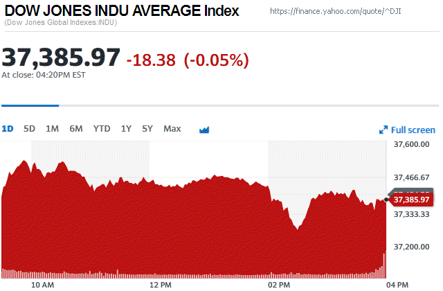During today’s trading day, there was a small rally with major stock indices closing with very tiny to small gains. The Dow Jones Industrial Average (DJIA) was up 0.00% to 37,306.02, a record high close, while the Standard & Poor’s 500 stock index was up 0.45% to 4,740.56. The NASDAQ Composite index was up 0.61% to 14,904.81. ![]() ![]() ![]() |