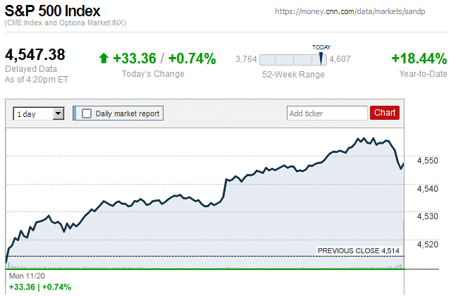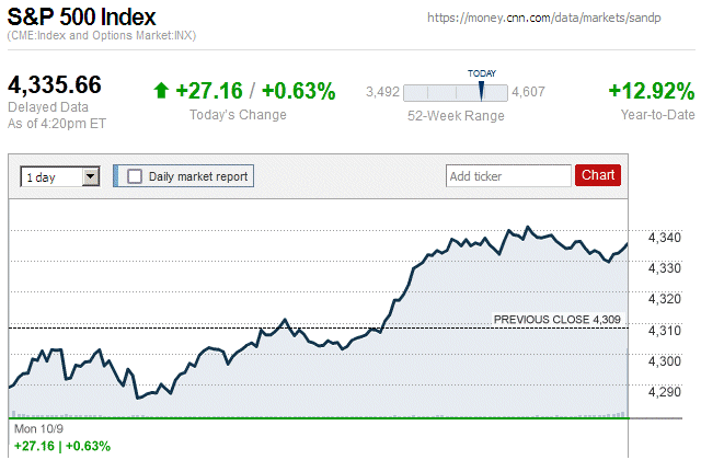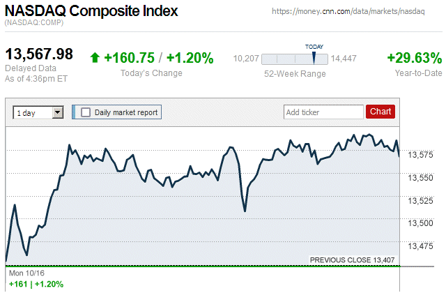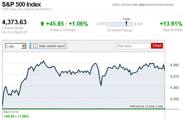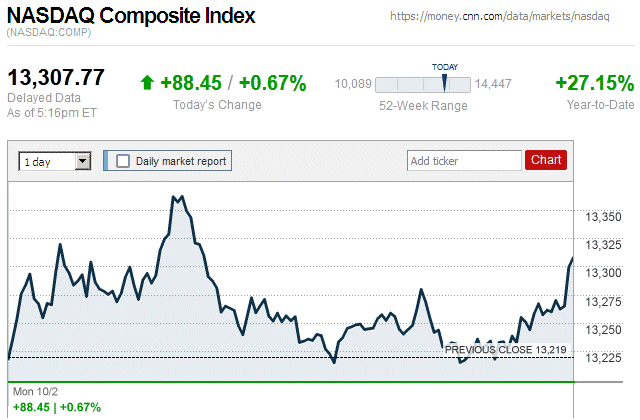 Beginning the week with a market rally, major stock indices closed today with moderate to large gains. Also, they were in positive territory for the entire trading day. ![]() ![]() ![]() |