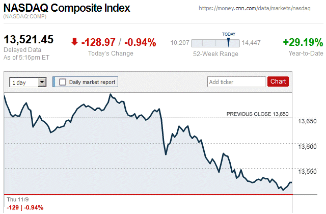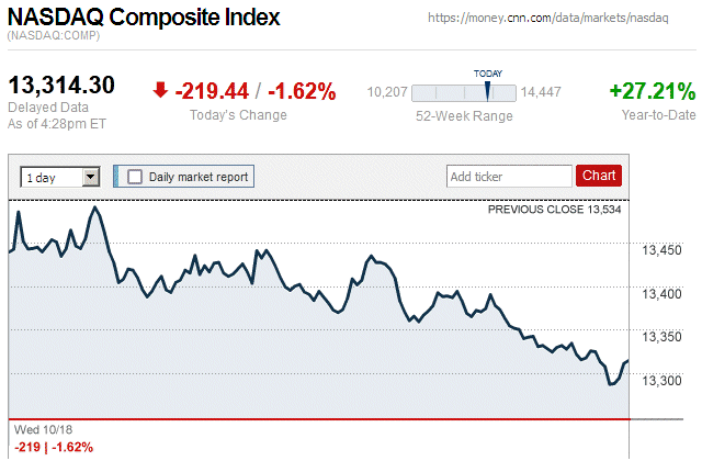 With a bit of “zigging” and “zagging” throughout the trading day, major stock indices closed the day with moderate to large losses. Also, they were in negative territory for the entire trading day. ![]() ![]() ![]() |