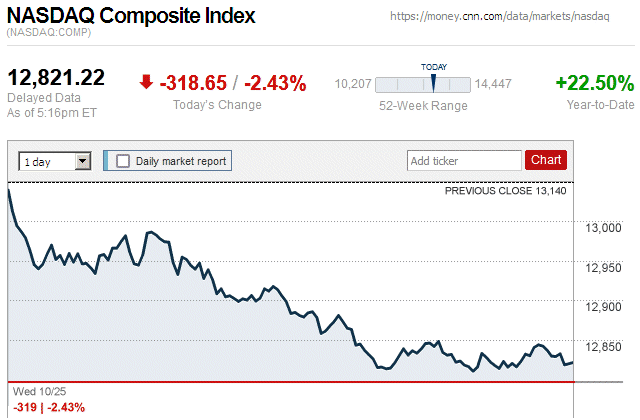 Similar to declines during the past two trading days, major stock indices closed today with moderate to large losses. Also, they were in negative territory for the entire trading day. ![]() ![]() ![]() |