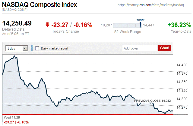 On the first widespread negative trading day in a week, major stock indices closed the day with small to moderate losses. Also, they were in negative territory for the entire trading day. ![]() ![]() ![]() |