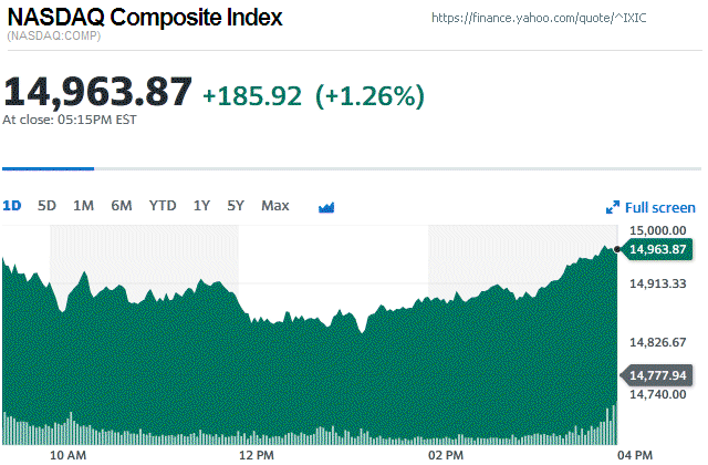 In a significant market rally, major stock indices escalated throughout the trading day and closed with large to very large gains. Also, they were in positive territory for the entire trading day. ![]() ![]() ![]() |