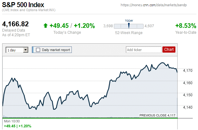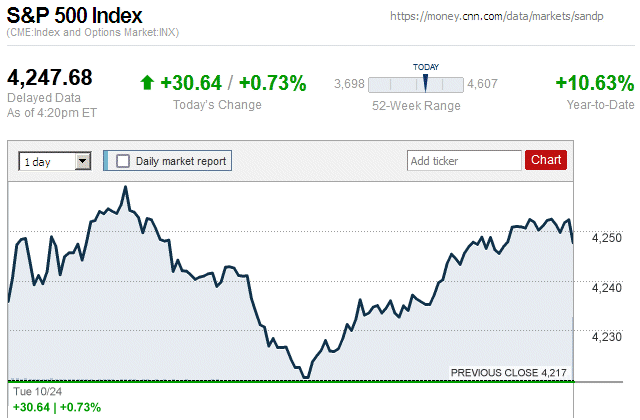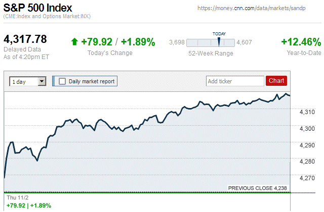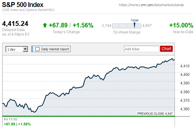 In the biggest market rally in weeks, major stock indices closed with moderate to very large gains. Also, they were in positive territory for the entire trading day. ![]() ![]() ![]() |