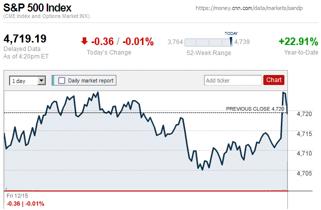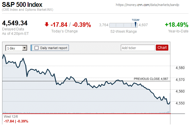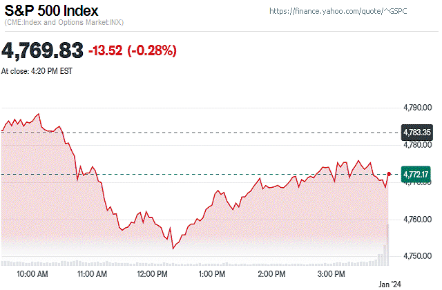 On the final trading day of the year, major stock indices began the day in positive territory but closed the day with small to moderate losses. The Dow Jones Industrial Average (DJIA) was down 0.05% to 37,689.54, while the Standard & Poor’s 500 stock index was down 0.28% to 4,769.83. The NASDAQ Composite index was down 0.56% to 15,011.35. ![]() ![]() ![]() |
