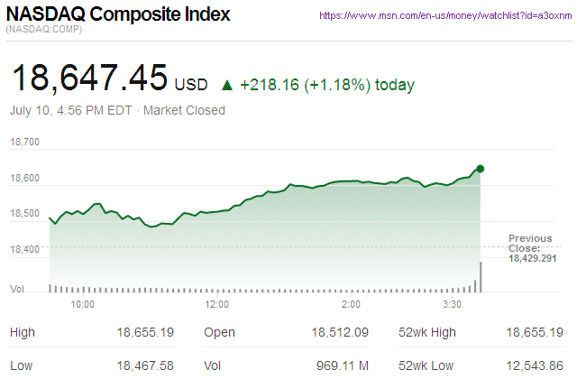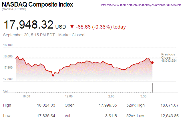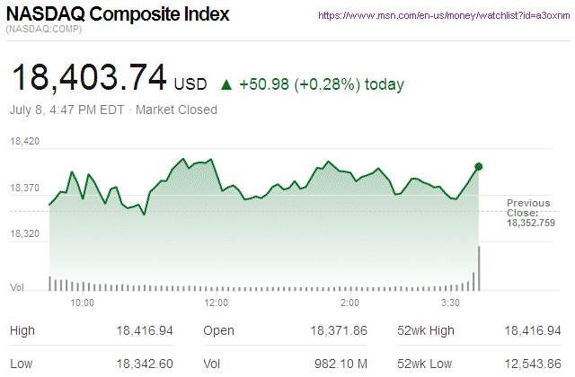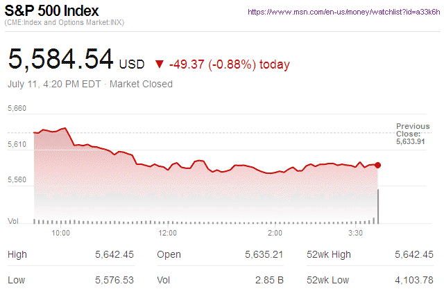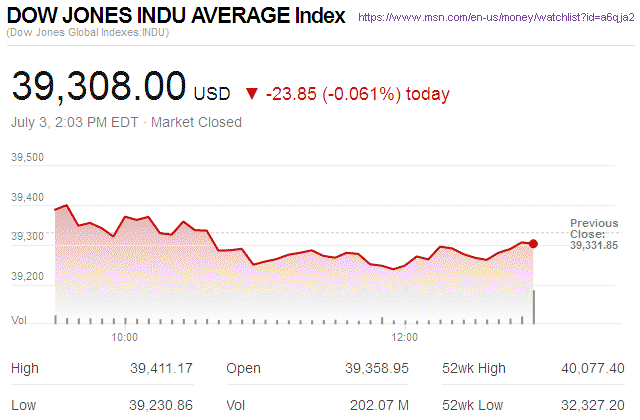 At the end of a market day of variable movements, major stock indices closed with small to large mixed amounts. The Dow Jones Industrial Average (DJIA) was up 0.08% to 39,753.75, while the Standard & Poor’s 500 stock index was down 0.88% to 5,584.54. The NASDAQ Composite index was down 1.95% to 18,283.41, with a record intraday high of 18,671.07. ![]() |