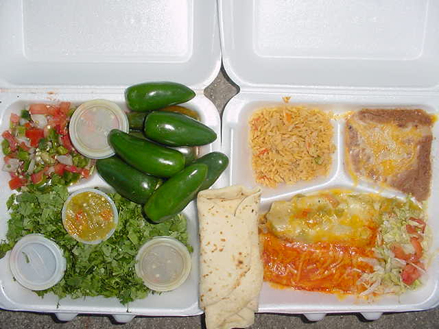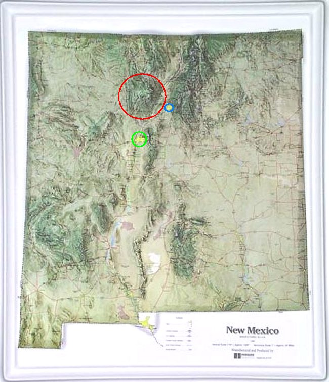 July 26, 2009 After the Southwest Hebraic Roots Conference, I ate at my favorite place in Albuquerque, Taco Cabana, since I do not get to go there very often. Their food is superb and reasonably priced. I got the chicken enchilada plate to go ($5.12, including tax) and ate it in a park.In the photo, you can see the two enchiladas, rice, and refried beans on the right. I requested that the enchiladas be topped with red and green chili, as I like both equally. Depending on the time of year, sometimes the red is hotter, and sometimes the green is hotter. Since I prefer my chili extremely hot (like I prefer my Thai food), I have a better chance of receiving a very spicy meal if I order red and green. Typically, at any New Mexican restaurant that serves Mexican food, the waiter/waitress will ask, “Red or green?” and the typical response by someone who wants both is “Christmas” (since red and green are the main colors of Christmas). On the left side of the photo is a box of my favorite condiments: hot (caliente or picante) salsa, jalapeño peppers, cilantro, and extra green chili. I like to think of the latter as “green gold”; it is so valuable in New Mexico that it almost could be used as a currency. (Maybe it will be when the dollar fails.) I opened one container of it so that you can see it. Also, can you tell that I like jalapeños? Admittedly, I ate three of them and took the rest with me. I like to cut them up on other foods that I eat. I can assure you that all of them will get eaten. I took the opportunity to drive around and take photos of the surrounding area. In the photo on the right are three volcanic mounds, clearly visible east of Albuquerque. New Mexico is one of the most highly volcanic states, containing many volcanic fields. In fact, in the photo on the left, under the broad expanse of that long cloud, is the 175-square mile, 12-mile wide Valles Caldera, a Supervolcano, about 50 miles north of Albuquerque. See a relief map of New Mexico, where I have encircled the huge Valles Caldera in red, Santa Fe in blue, and Albuquerque in green.Incidentally, Santa Fe, the capital of NM, is believed by many to be the oldest city in the USA. Its 400th birthday is next year (2010). For certain, it is the oldest city that is a state capital. It also is the highest state capital in the USA—highest in elevation (7,000 feet), that is, not necessarily in the frame of mind of its inhabitants, although that may be true as well. At a minimum, many of them get “high” on red and green chili. ![]() I took a series of other photos in the area. I am a cloud freak, probably because I know that Jesus is returning again on the clouds (Matthew 24:30; Revelation 14:14). Thus, most of my pictures include clouds. NM has some of the most awesome, spectacular clouds I have seen anywhere. If you would like to see some of the photos I took, go here: A Few Scenic Photos of North Central New Mexico. |
