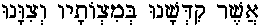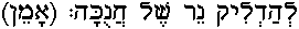 | Barukh atah Adonai, Eloheinu, melekh ha‘olam asher kidishanu b‘mitz‘votav v‘tzivanu l‘had‘lik neir shel Chanukah. (Amein) Who has sanctified us with His commandments and commanded us to light the lights of Hanukkah. (Amen) |